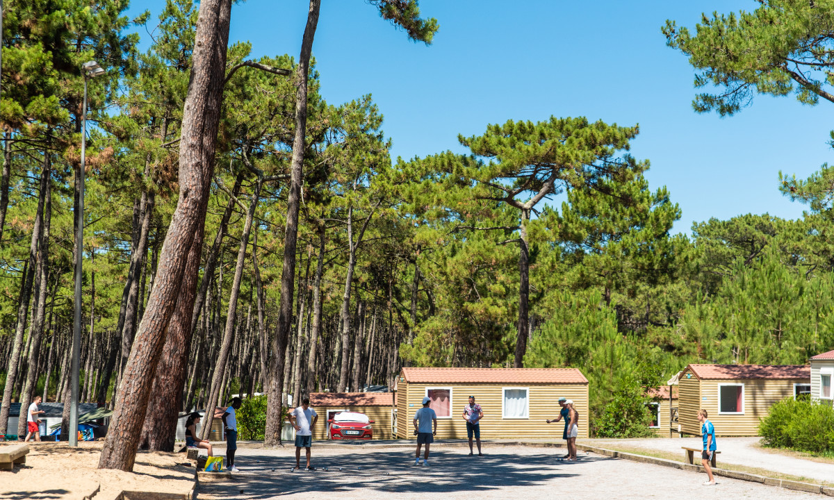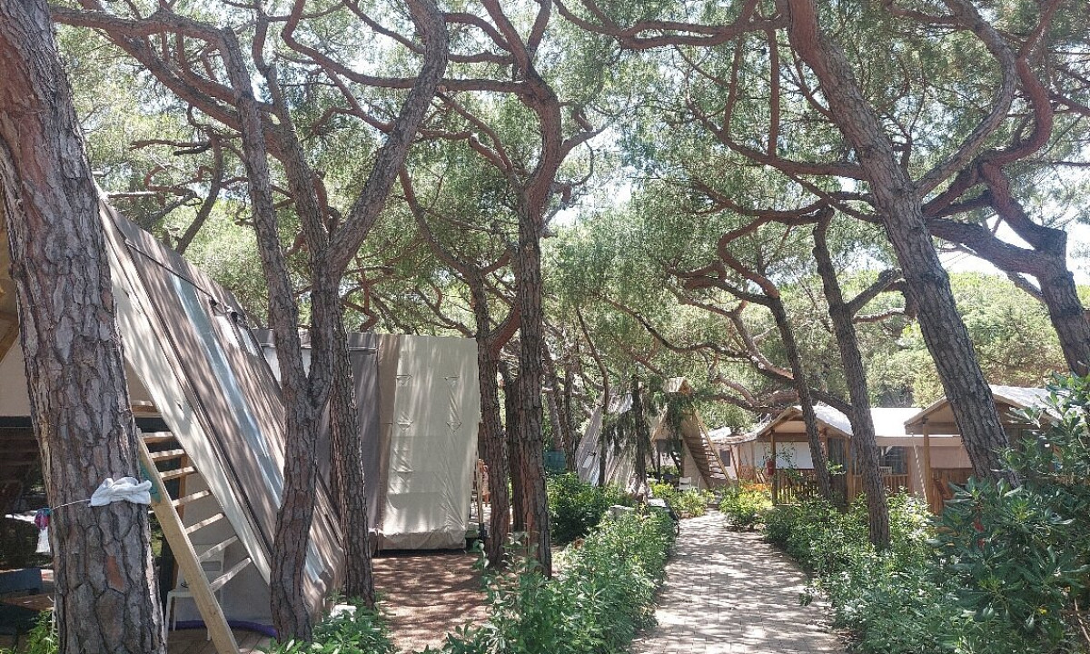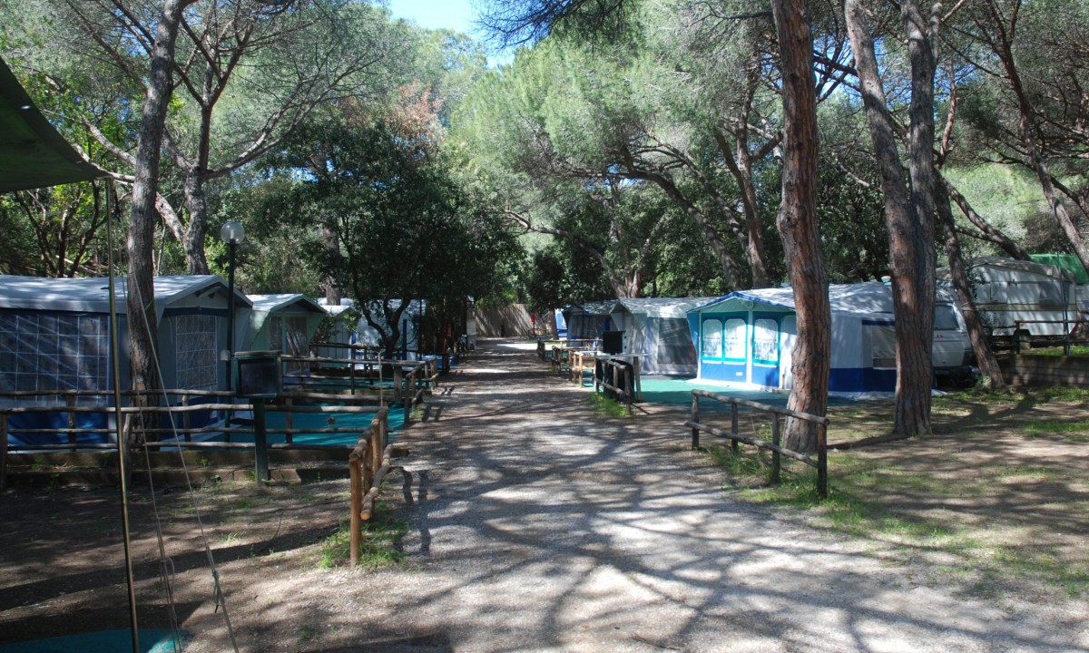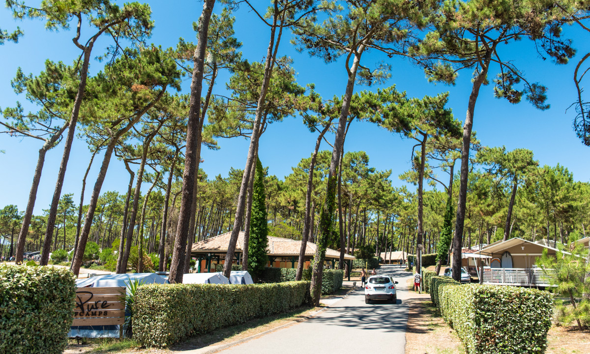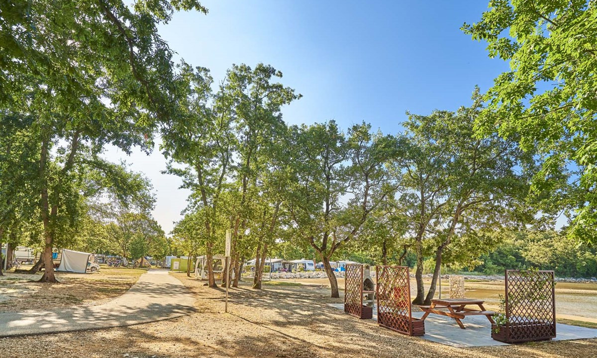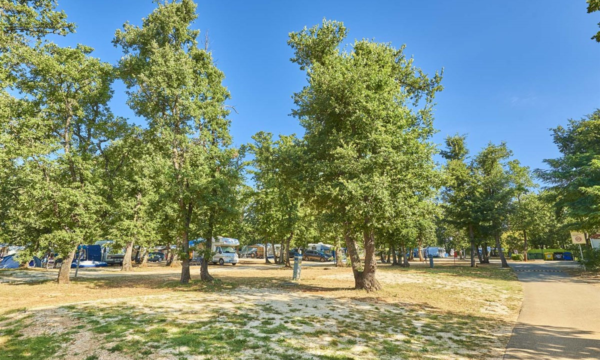 - In einem schattenspendenden Kiefernwald gelegen