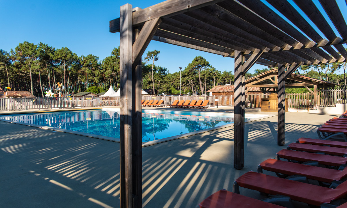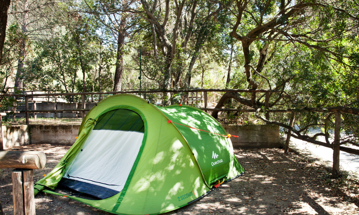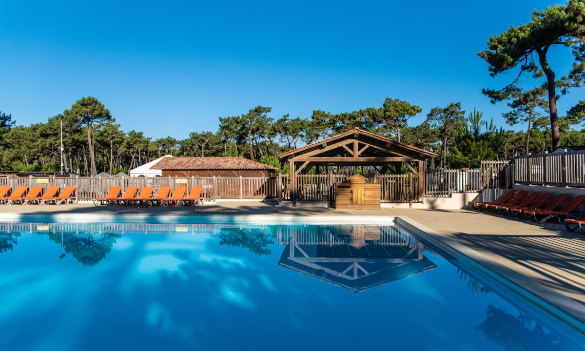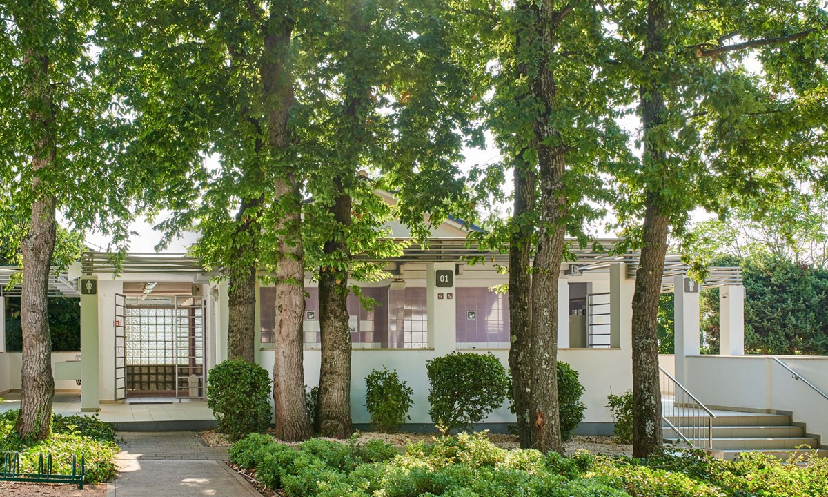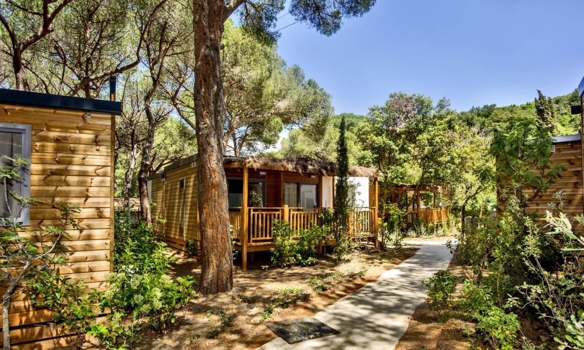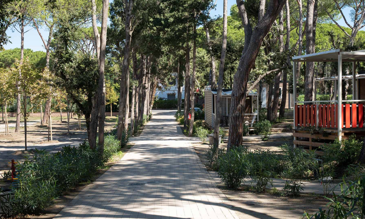- In einem schattenspendenden Kiefernwald gelegen