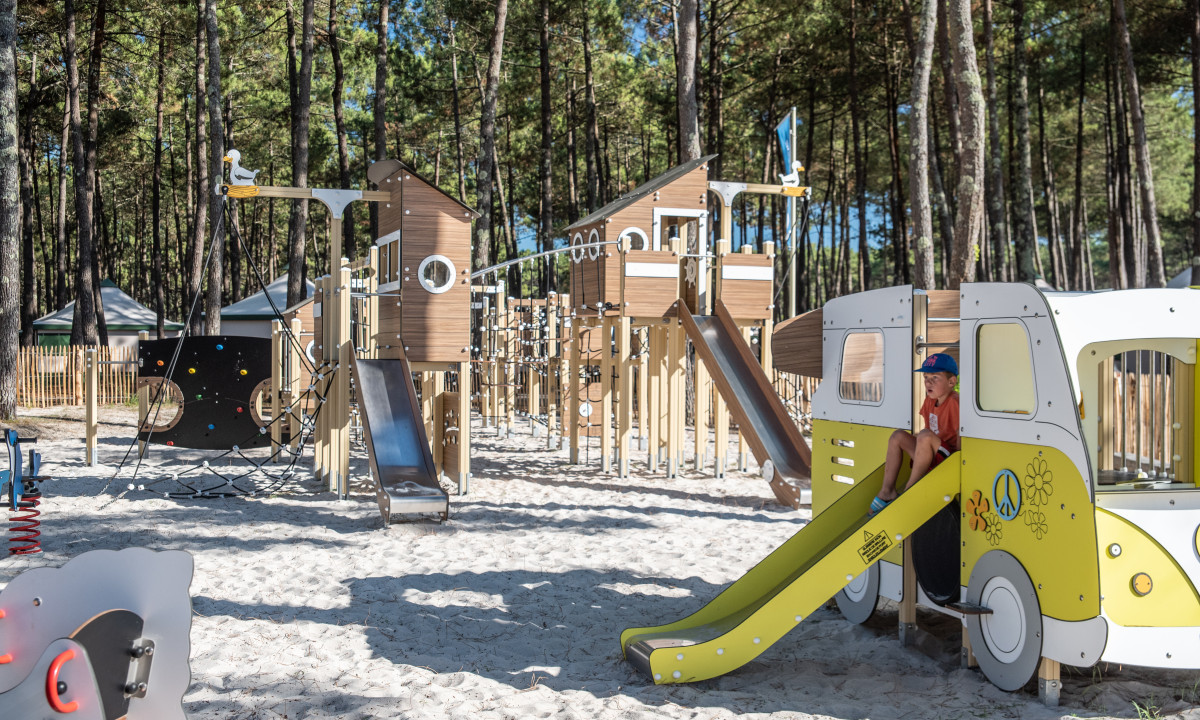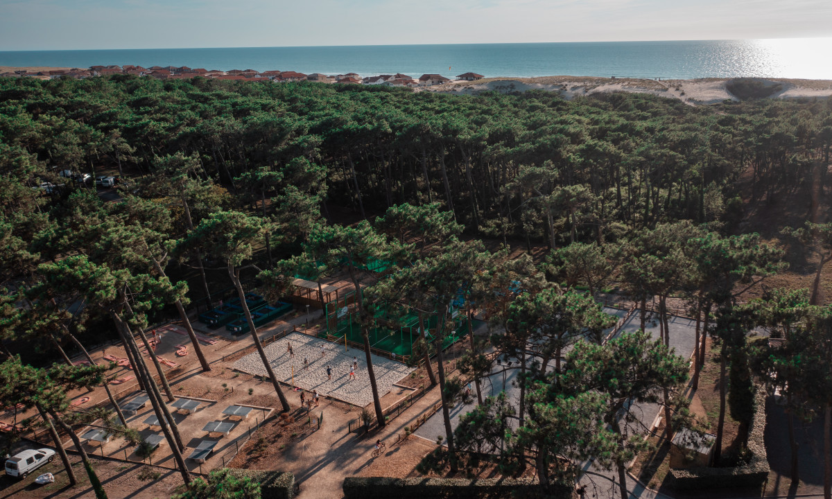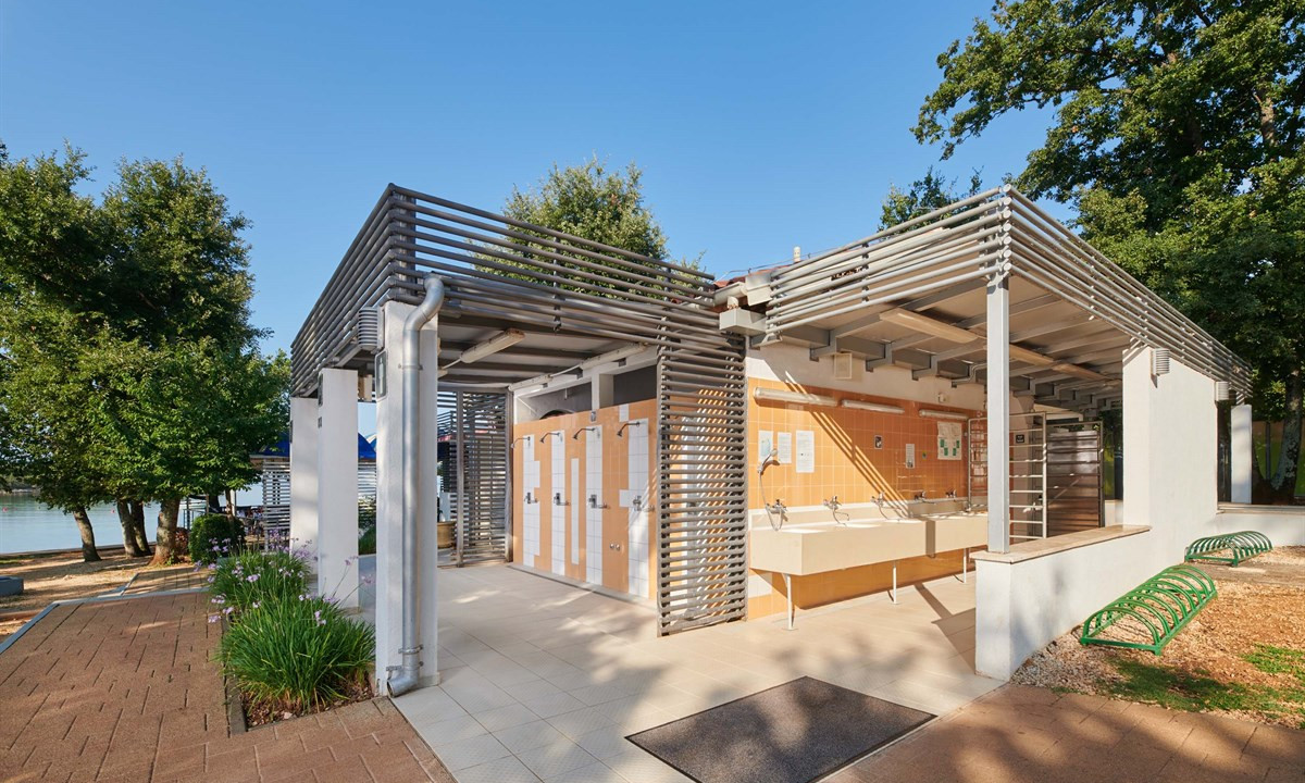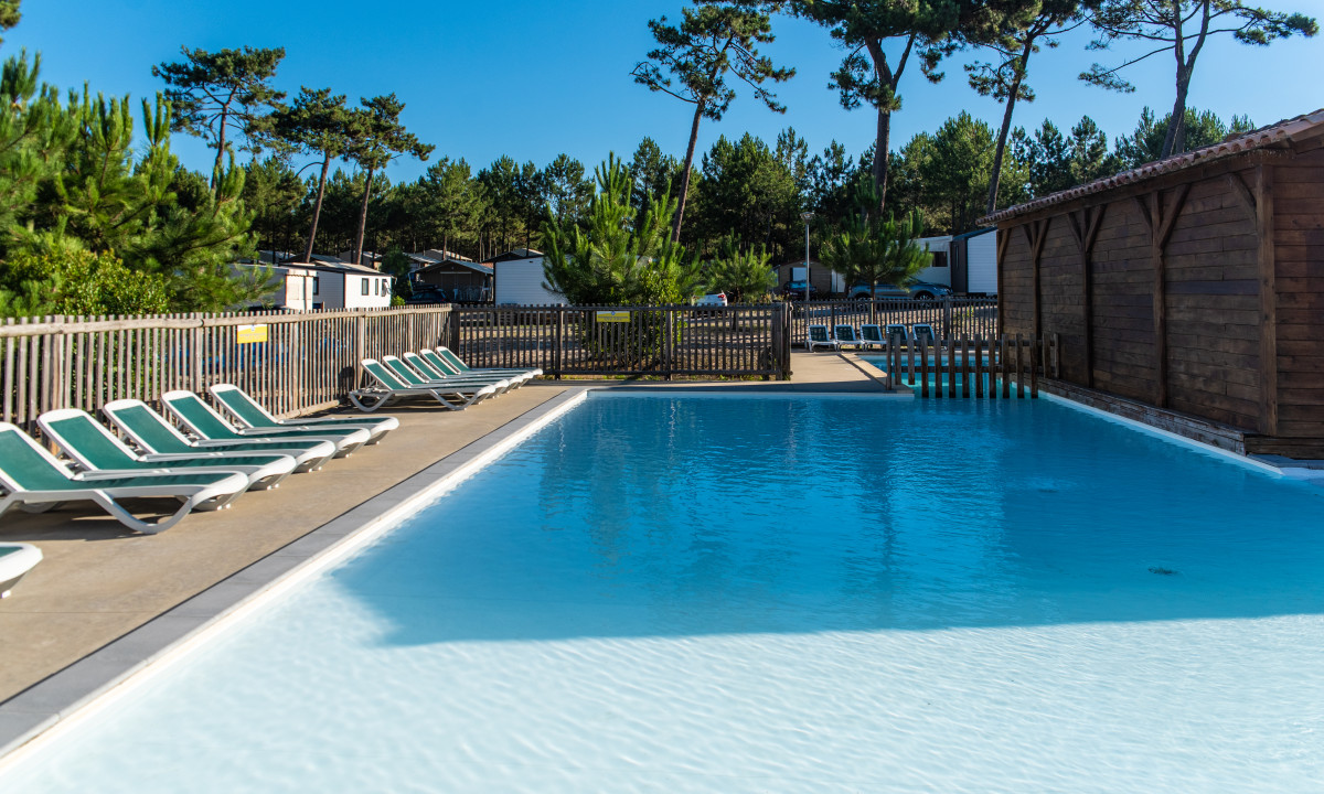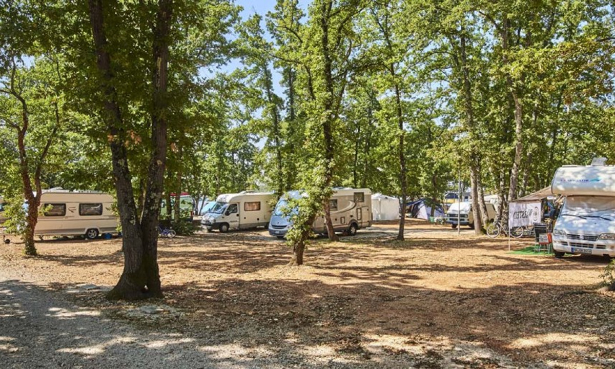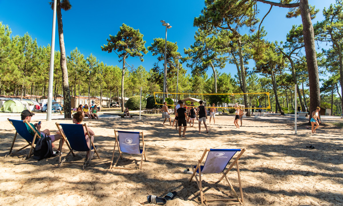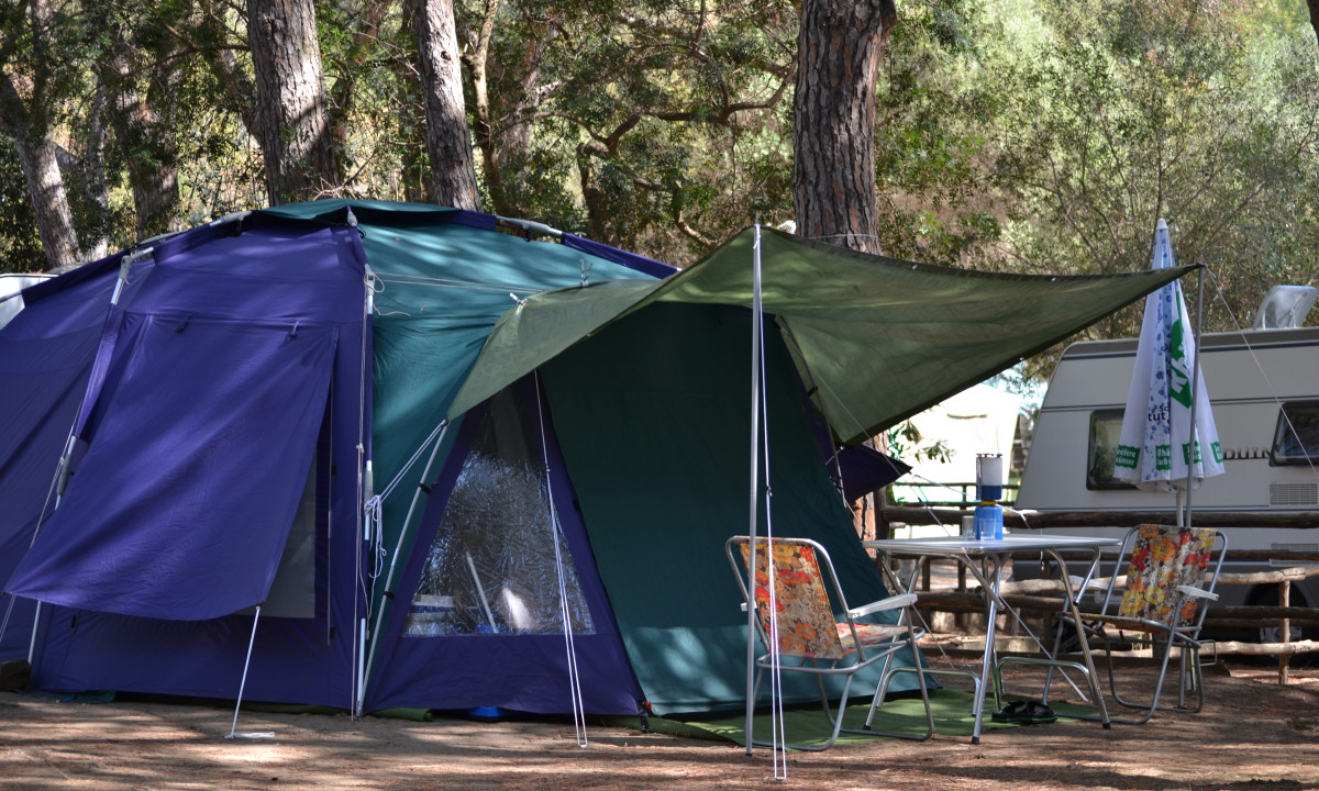 - In einem schattenspendenden Kiefernwald gelegen