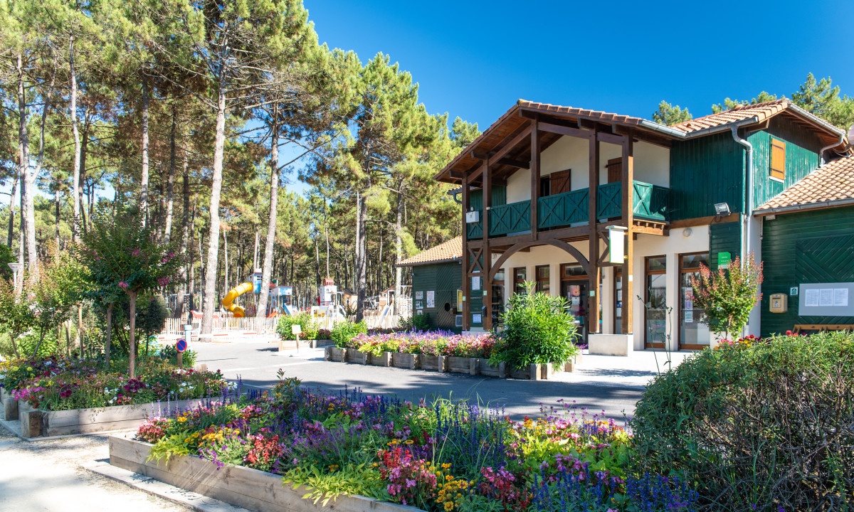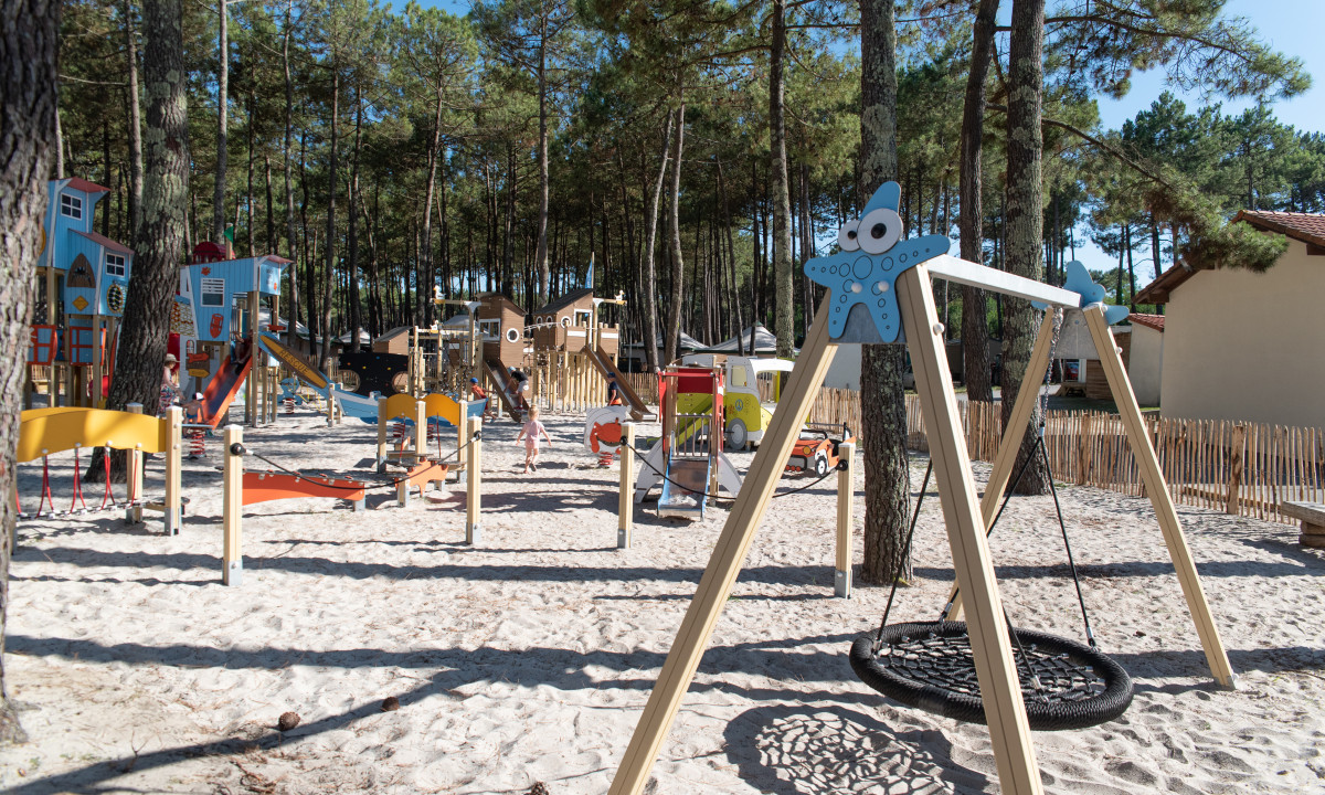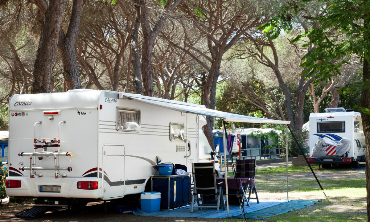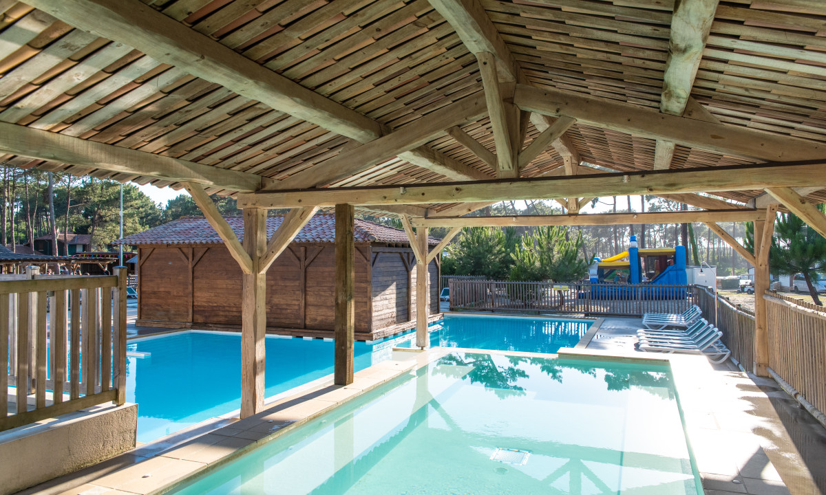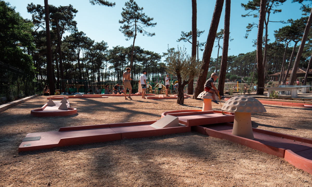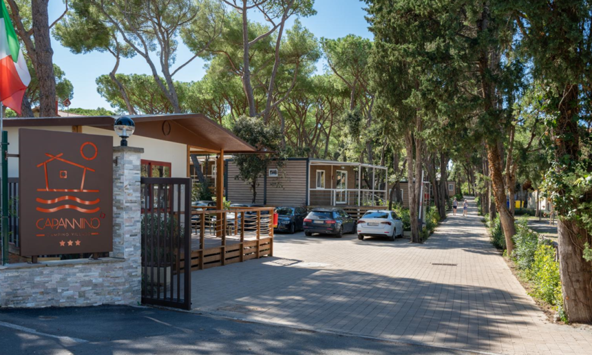 - In einem schattenspendenden Kiefernwald gelegen