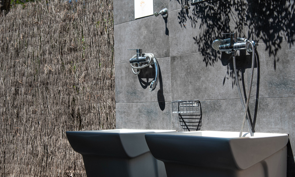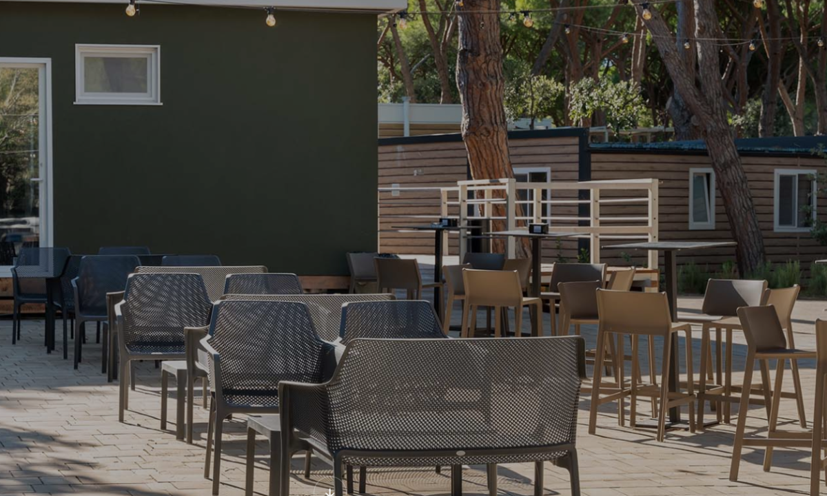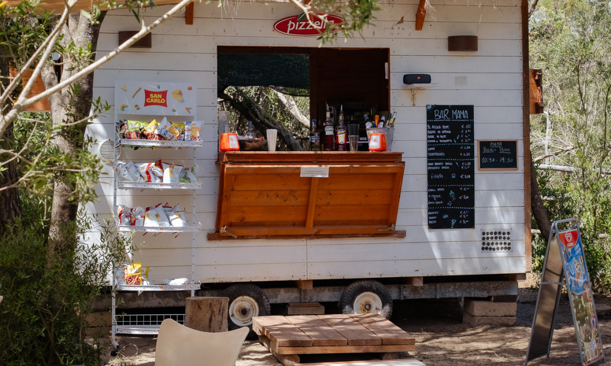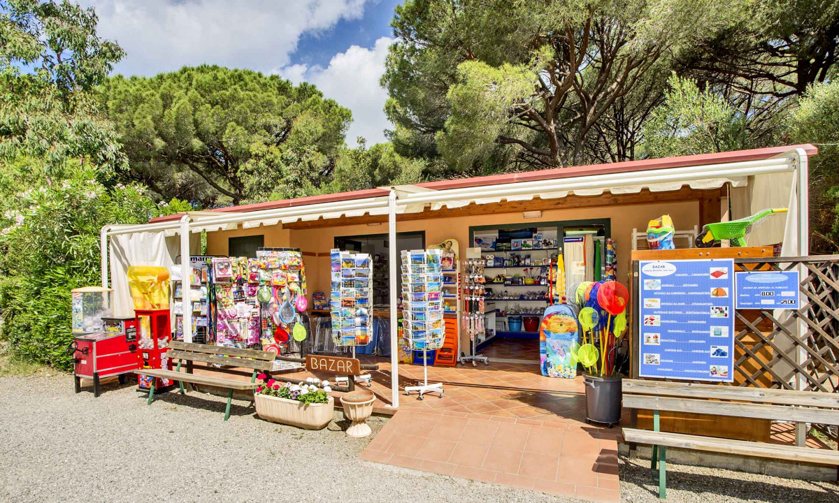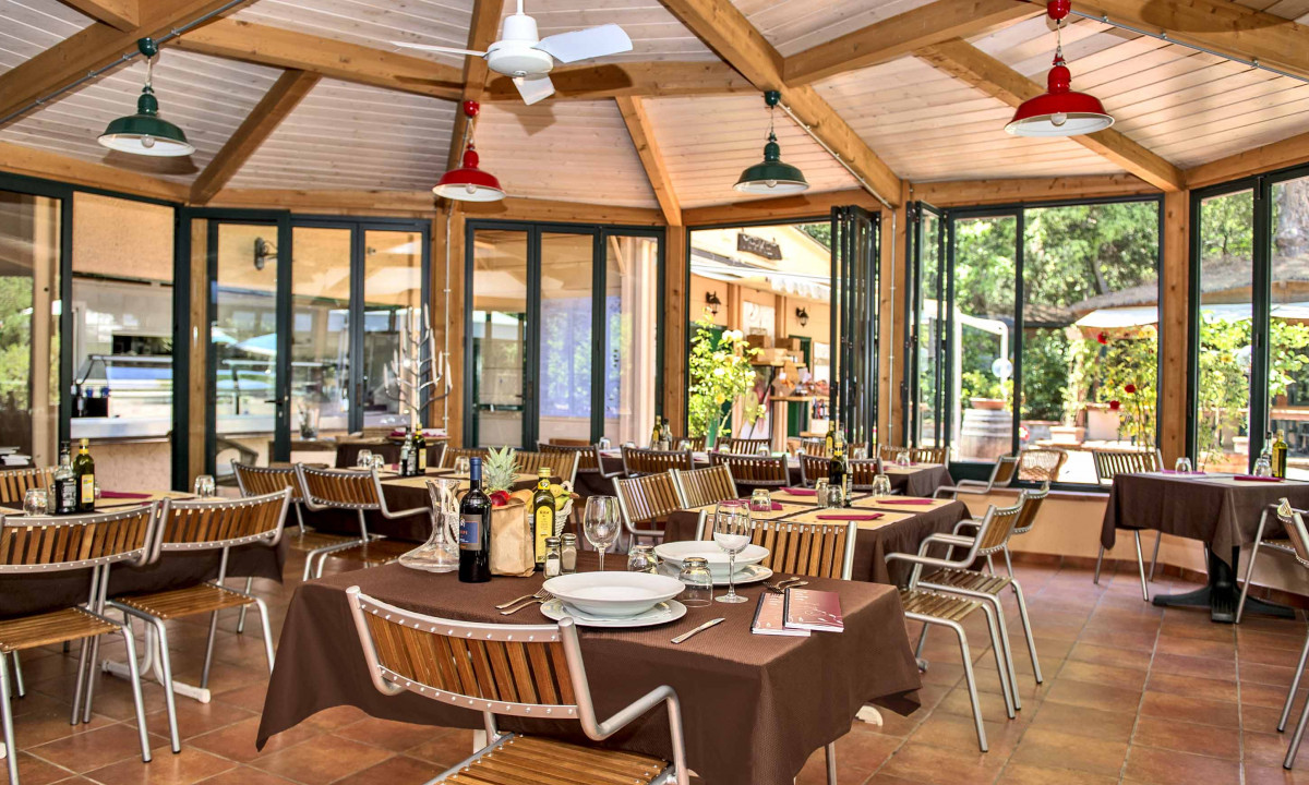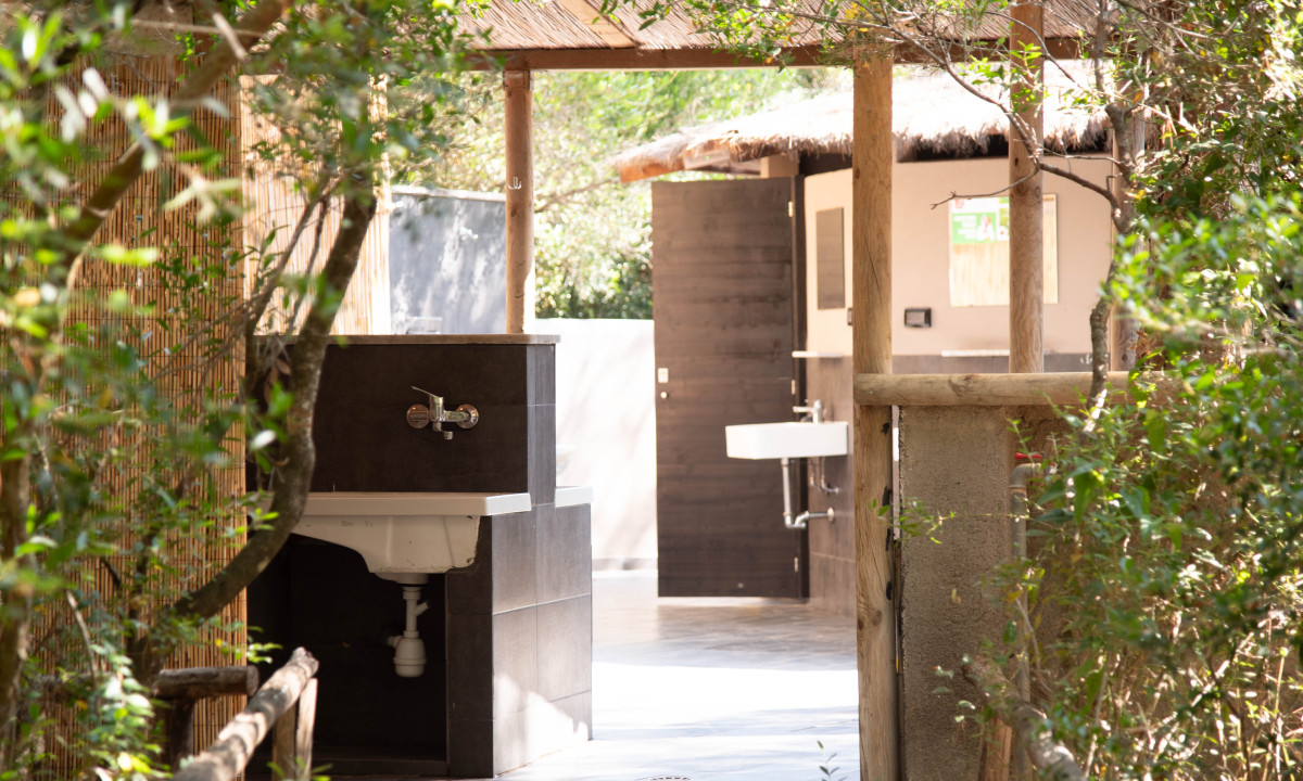 - In einem schattenspendenden Kiefernwald gelegen
