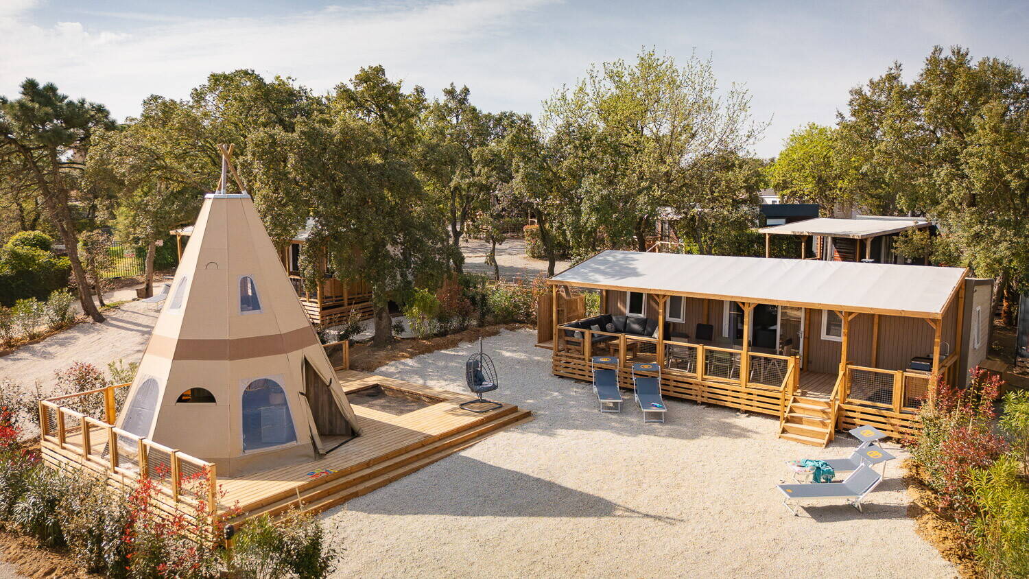 Beim Luxus-Camping im Mobilheim wohnen Sie direkt an einem langen Naturstrand mit feinem weißen Sand und Dünen und genießen das kristallklare Wasser des Mittelmeers. Auf dem Platz steht Ihnen zudem ein großer Aquapark mit Rutschen, beheizten Pools und Whirlpool zur Verfügung. Ausreichend Liegen und Palmen sorgen für Komfort beim Sonnenbaden. Die Pools sind teilweise überdacht und bieten so auch in den nicht so warmen Wintermonaten Badevergnügen.