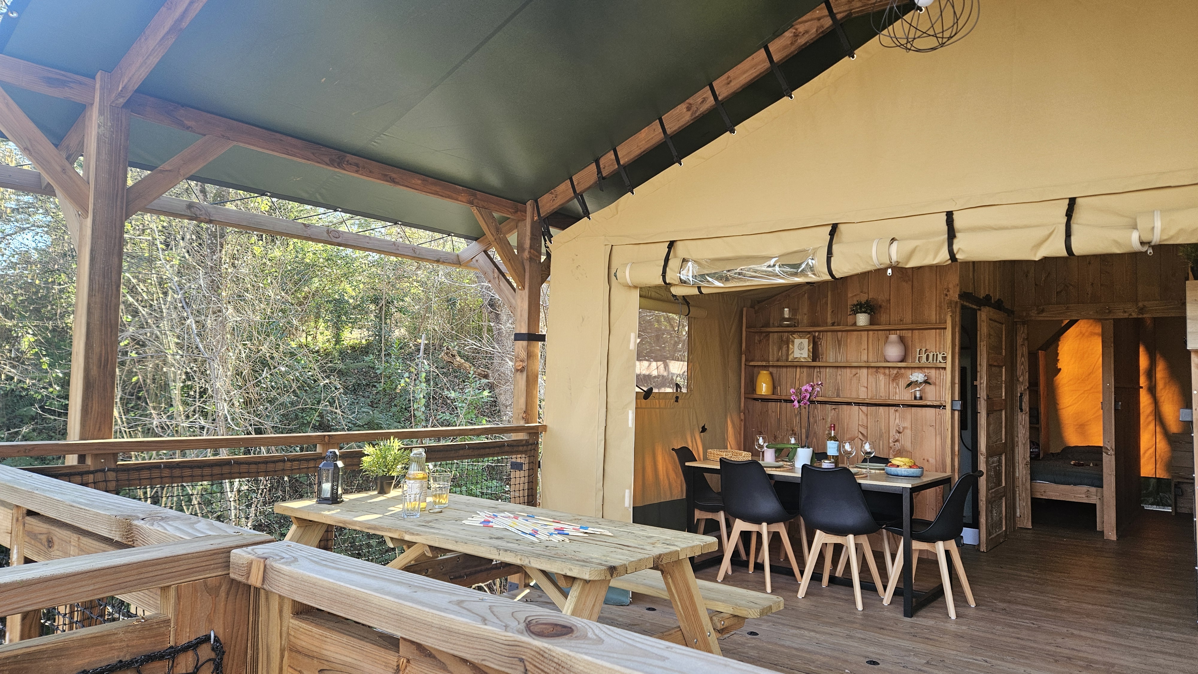 Für Kinder gibt es einen Abenteuerspielplatz mit Trampolin, einen Fußballplatz, Volleyball, Badminton und Tischtennis. Das Animationsteam organisiert regelmäßig spannende Schatzsuchen und kreative Workshops, um die Fantasie Ihrer Kinder zu wecken. Für Sportbegeisterte gibt es zahlreiche Möglichkeiten: Machen Sie schöne Wanderungen in der Umgebung, versuchen Sie sich im Wildwasserkanu oder erleben Sie einen Adrenalinkick beim Gleitschirmfliegen. Der Campingplatz verfügt auch über mehrere gastronomische Einrichtungen. In der gemütlichen Snackbar können Sie köstliche hausgemachte Gerichte genießen, ideal für einen schnellen Imbiss oder ein entspanntes Abendessen. Vergessen Sie nicht, an den speziellen Themenabenden teilzunehmen, z. B. Muscheln mit Pommes frites oder Paella, wo Sie in gemütlicher Atmosphäre lokale und internationale Gerichte genießen können. Am Abend erwacht der Campingplatz mit einem breiten Angebot an Aktivitäten und Unterhaltung zum Leben. Von Musikkonzerten unter dem Sternenhimmel bis hin zu Quizabenden und Spieleturnieren gibt es immer etwas zu tun. Das Spielzimmer im Freien bietet mit Flipperautomaten, Billardtischen und Tischfußball Unterhaltung für alle Altersgruppen.