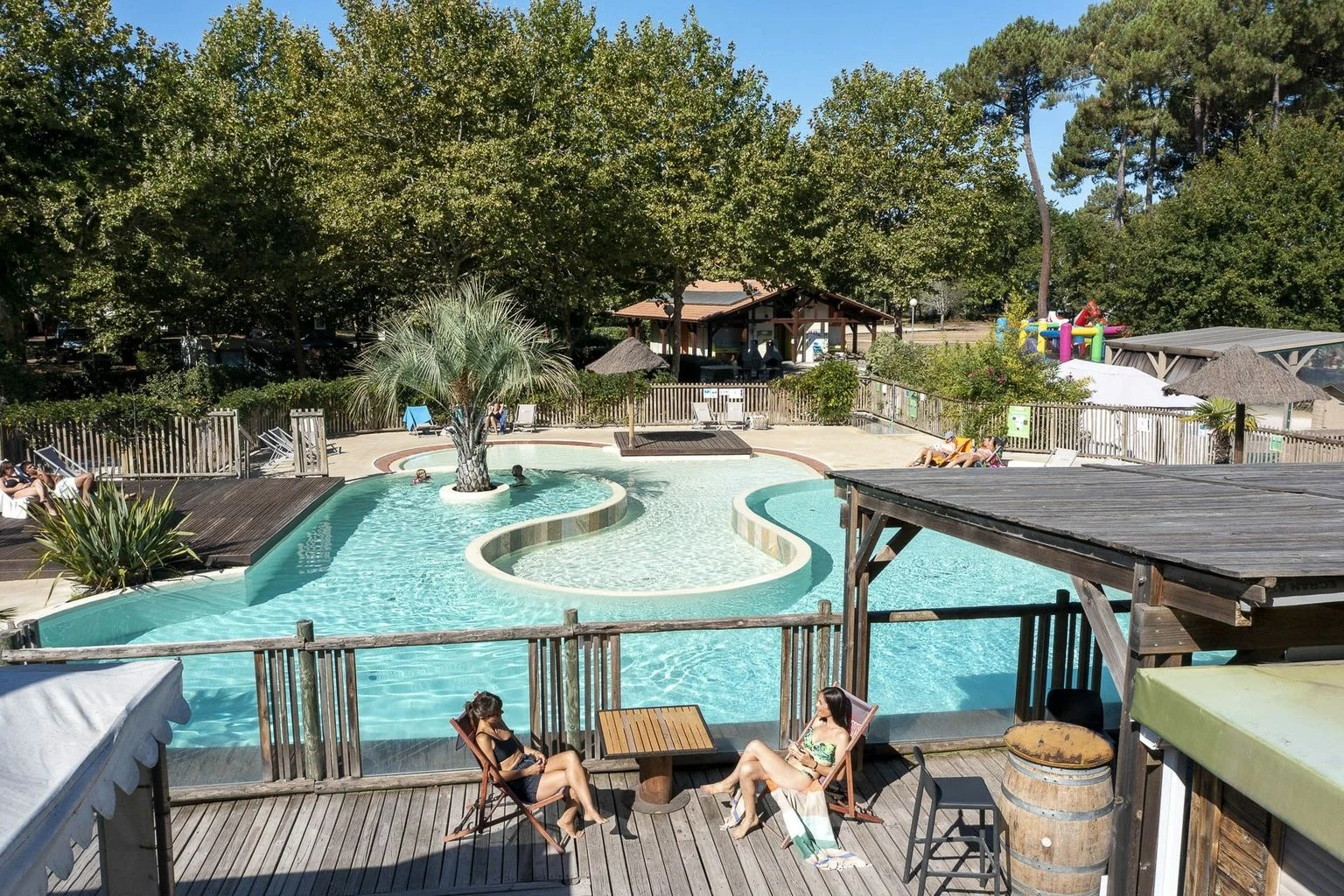 Was wird es heute sein? Schnorcheln im Meer, Spielen am See oder Schwimmen im Pool? Für Wasserliebhaber gibt es in diesem Campingurlaub eine große Auswahl. Im gemütlichen Schwimmbad mit Palmen, Sonnenliegen, Sonnenschirmen und der angrenzenden Terrasse vergeht die Zeit wie im Flug. Ihr Kleinkind wird beschäftigt sein, denn das Planschbecken bietet endlosen Planschspaß.
